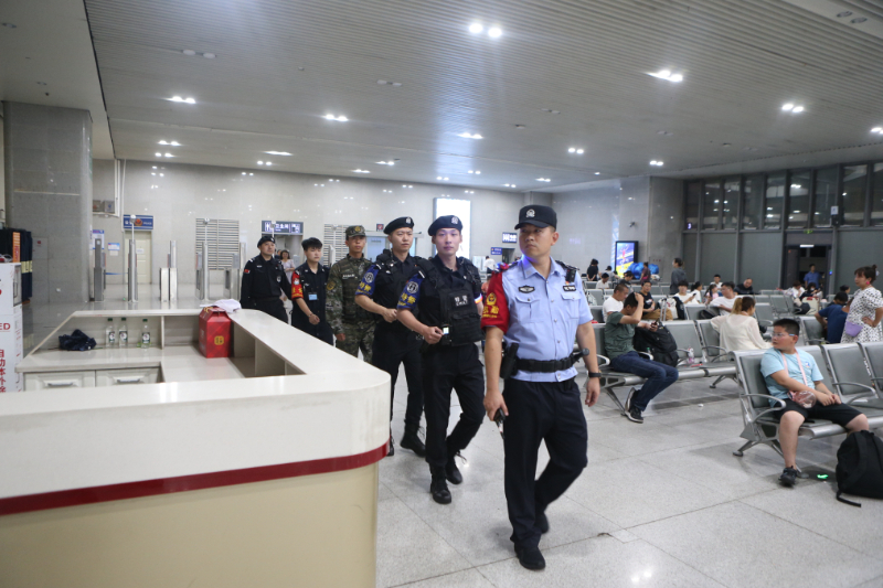 北京铁路警方在车站内开展治安巡逻(北京铁路公安局供图)