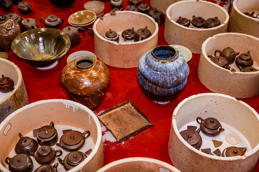 “宜兴紫砂璀璨千年,随着数字化时代到来,我们传承非遗的方式也需要与时俱进,‘破圈’发展,进一步推动传统陶瓷文化有新的生命力和时代价值。”中国非物质文化遗产保护协会陶瓷分会副会长葛军说。(记者何磊静)