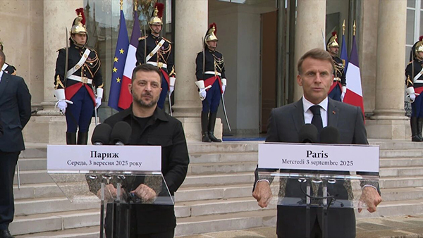 当地时间9月3日,乌克兰总统泽连斯基抵达巴黎,与法国总统马克龙举行会晤。双方在会晤后发表了联合声明。马克龙表示,过去几周的密集工作使欧洲各国已“准备好为乌克兰提供安全保障”。马克龙说,“乌克兰和乌克兰人民的安全,也是法国和欧洲的安全”。
