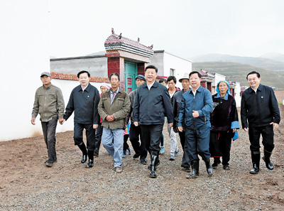 23日上午,习近平来到海东市互助土族自治县,考察了实施易地扶贫搬迁的班彦村。新村建设即将竣工,一排排院落规划有致。习近平详细了解新村建设方案,进入村民新居察看面积、结构、建筑质量,同监理新居建设的村民们交流。在土族贫困户吕有金家,习近平同一家人围坐一起,看反映乡亲们一直居住的旧村状况的视频。得知去旧村有7公里陡峭崎岖的山路,村民祖祖辈辈居住在出入不便、严重缺水的地带,习近平对一家人说,党和政府就是要特别关心你们这样的困难群众,通过移民搬迁让你们过上好日子。习近平拿起扶贫手册和贫困户精准管理手册,逐一询问发展种养业、参加劳务培训、孩子上学、享受合作医疗和养老保险等扶贫措施的落实情况。习近平指出,移民搬迁是脱贫攻坚的一种有效方式。移民搬迁要充分征求农民群众意见,让他们参与新村规划。新村建设要同发展生产和促进就业结合起来,同完善基本公共服务结合起来,同保护民族、区域、文化特色及风貌结合起来。离开新村时,土族群众闻讯而来,在村口列队,欢声雷动。习近平高兴地同他们合影留念。