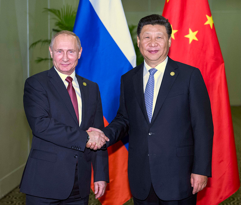 普京表示,很高兴再次同习近平主席会晤,俄中高水平的关系对全球和平稳定十分重要,双方应该保持密切高层交往。当前,俄中双边经贸关系发展势头良好,高新技术等领域合作取得积极成果。俄方期待着同中方共同推进欧亚经济联盟建设同“一带一路”建设对接合作。俄中双方要加强在亚太经合组织等多边事务中协调合作。