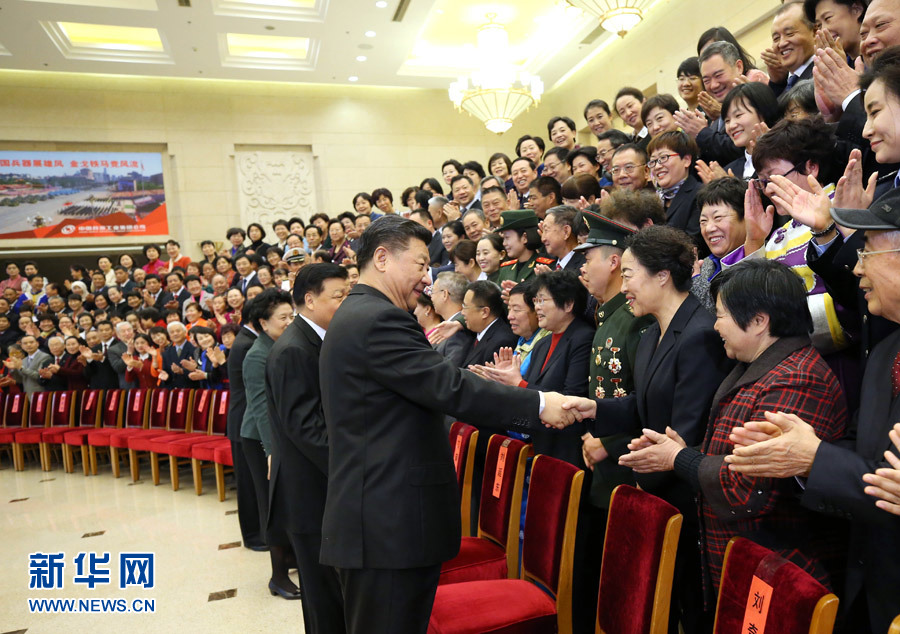 12月12日,党和国家领导人习近平、刘云山等在北京会见第一届全国文明家庭代表。新华社记者 马占成摄