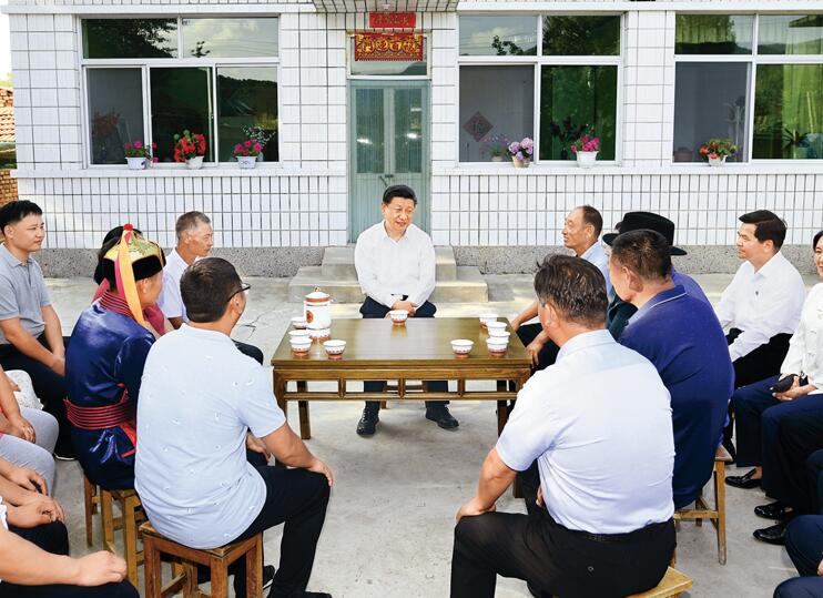 2019年7月15日至16日,中共中央总书记、国家主席、中央军委主席习近平在内蒙古考察并指导开展“不忘初心、牢记使命”主题教育。这是15日下午,习近平在赤峰市喀喇沁旗河南街道马鞍山村村民张国利家,同基层干部群众代表座谈交流。 新华社记者 谢环驰/摄