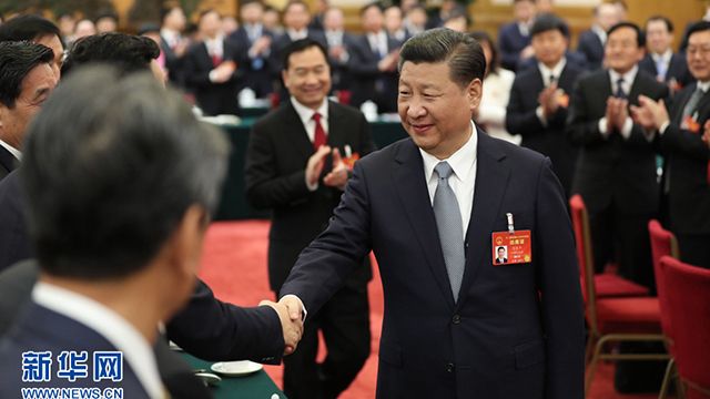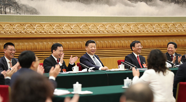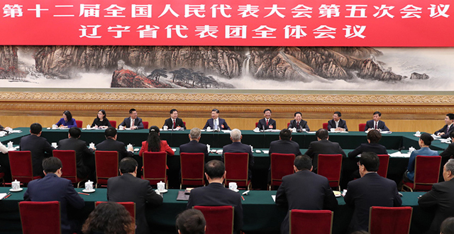 图为:2017年3月7日,中共中央总书记、国家主席、中央军委主席习近平参加十二届全国人大五次会议辽宁代表团的审议。