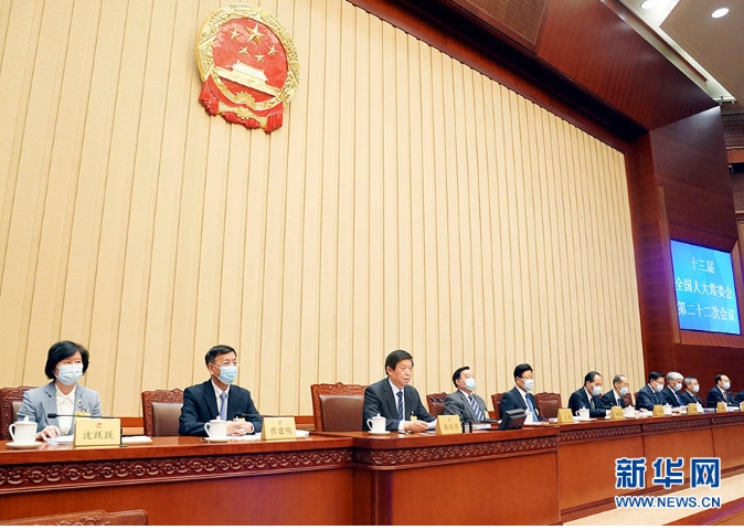 10月17日,十三届全国人大常委会第二十二次会议在北京人民大会堂闭幕。栗战书委员长主持会议。 新华社记者 刘卫兵 摄