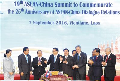9月7日,国务院总理李克强在万象国家会议中心同东盟国家领导人共同出席中国—东盟建立对话关系25周年纪念仪式,李克强在发言中表示,中国—东盟关系经受住国际风云变幻的考验,树立了大小国家平等相待、共谋发展的典范