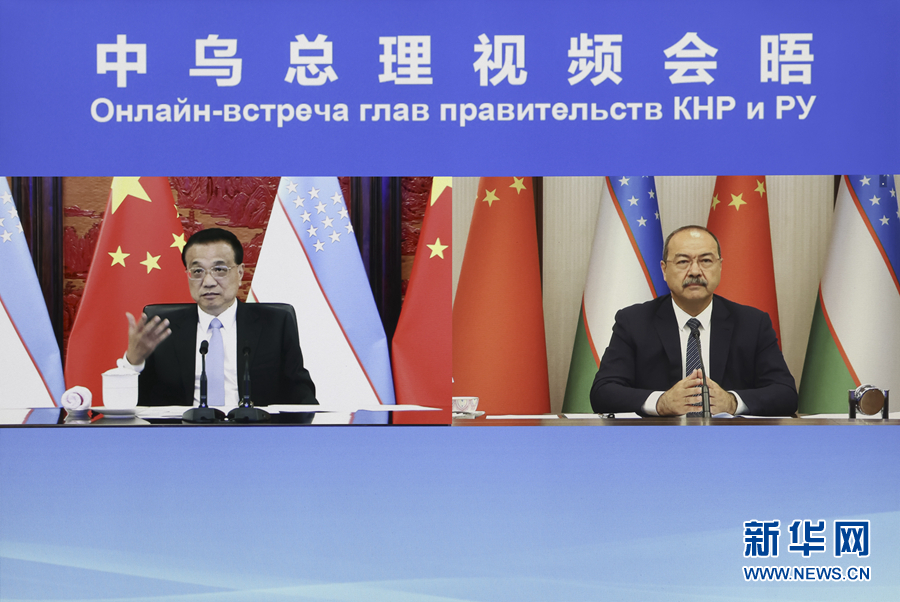 6月8日,国务院总理李克强在北京中南海紫光阁应约同乌兹别克斯坦总理阿里波夫举行视频会晤。新华社记者 丁海涛 摄