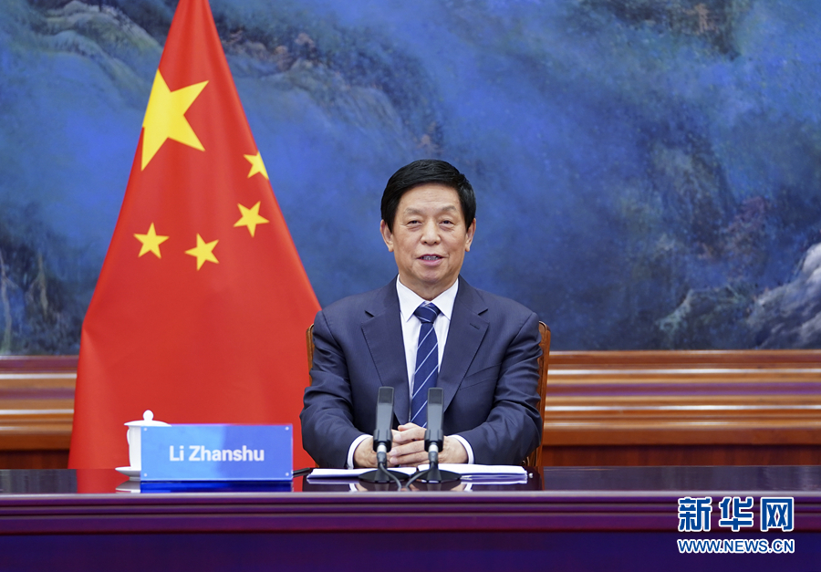 6月22日,全国人大常委会委员长栗战书在北京人民大会堂以视频方式同塞尔维亚国民议会议长达契奇举行会谈。新华社记者 张领 摄