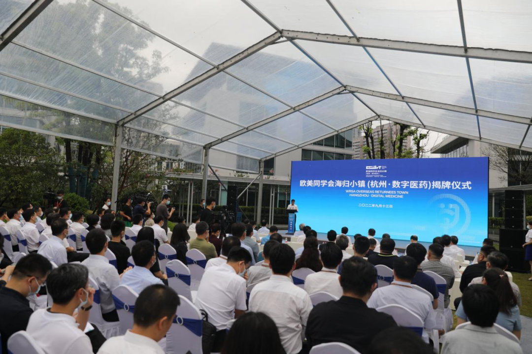9月13日下午,欧美同学会海归小镇(杭州·数字医药)揭牌仪式在杭州市萧山区举行。全国人大常委会副委员长、欧美同学会(中国留学人员联谊会)会长丁仲礼,浙江省委常委、统战部部长邱启文出席仪式并共同为海归小镇(杭州·数字医药)揭牌。杭州市委副书记、市长刘忻致辞,欧美同学会副会长、自然资源部原副部长曹卫星讲话。欧美同学会党组书记、秘书长王丕君宣读《关于同意欧美同学会海归小镇(杭州·数字医药)运营启动的函》。仪式由杭州市委常委、萧山区委书记王敏主持。