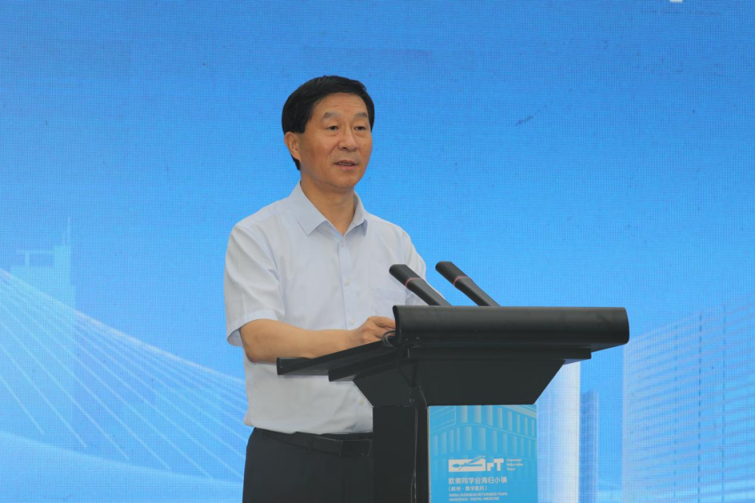 曹卫星在讲话中指出,欧美同学会海归小镇是贯彻落实习近平总书记在欧美同学会成立100周年庆祝大会上重要讲话精神的务实举措,是更好发挥“留学报国人才库”作用的有益探索和积极行动。杭州自2020年12月启动申建工作以来,浙江省及杭州市党委、政府高度重视,特别是市委组织部始终保持了共建海归小镇的定力、热情和信心,把海归小镇作为新时代人才工作的新抓手、新载体,统筹力度大,重要人才政策支持力度大,建成建好的决心大;聚焦“数字医药”产业定位,对标对表“四个杭州”“四个一流”,高标准谋划产业布局、发展规划,高质量推进选址建设、配套设施,力争通过平台建设抢抓全球产业格局调整、人才流动竞争先机。萧山区委、区政府按照海归小镇总体规划目标,全力推进、倾心打造、积极作为,各项工作取得明显进展和扎实成效。相信海归小镇(杭州·数字医药)一定会实现每个小镇聚集5万以上海归的人才聚集效应、每个小镇孕育并诞生若干个该产业的独角兽、隐形冠军和上市公司的企业集群效应、每个小镇将形成独领风骚的信息链、产业链、生态链,助力浙江省及杭州市经济社会高质量发展。