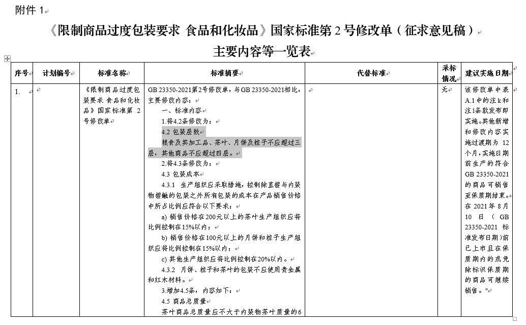 央视网消息:据工业和信息化部,根据国家标准委下达的强制性国家标准制修订计划,工业和信息化部组织完成了《限制商品过度包装要求 食品和化妆品》强制性国家标准第2号修改单(征求意见稿)的编制工作。为进一步听取社会各界意见,现对标准征求意见稿及编制说明予以公示,截止日期2023年9月17日。