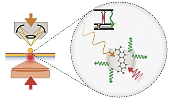 研究人员解释说,维持分子中原子之间距离的键可像弹簧一样振动,同时这些振动会在非常高的频率下产生共振,它们可被人眼看不见的中红外区域光激发。室温下的键随机运动,因此,探测中红外光的一个主要挑战是避免这种热噪声。现代探测器依赖于能量密集型和体积庞大的冷却半导体器件,但此次研究提出了一种在室温下检测这种光的新方法。