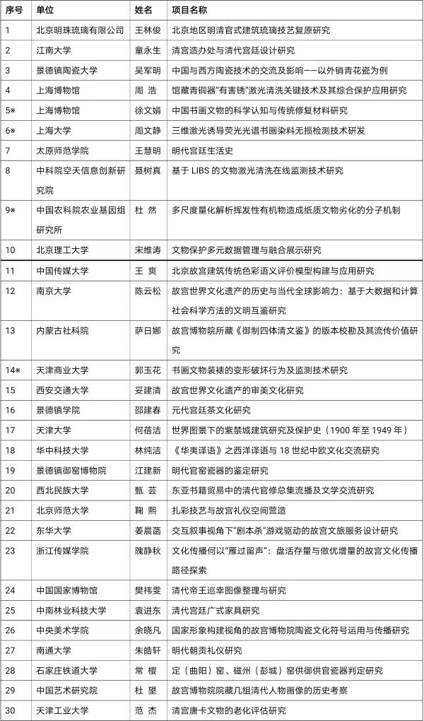 故宫博物院第二期“开放课题”立项名单。(故宫博物院供图)