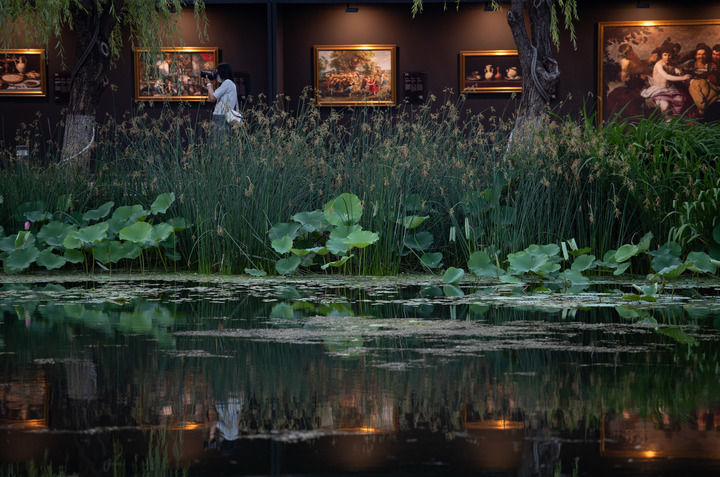 这是北京亮马河畔举办的油画展(6月16日摄)。