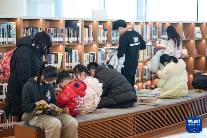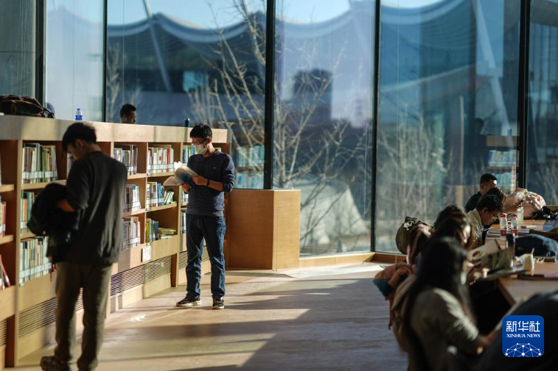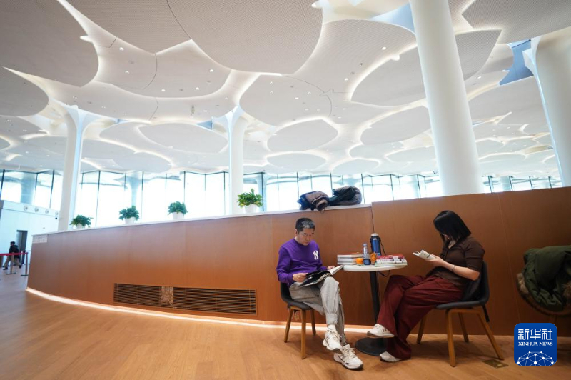 周末,不少市民来到新开馆不久的北京城市图书馆,在书香中度过假日。