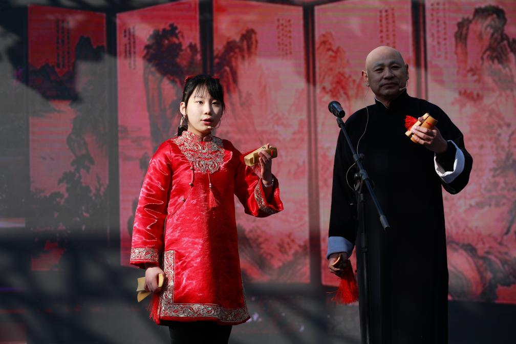 《玲珑塔》节目表演结束后,李派快板第二代传承人段如增立即赶赴下一个演出场地。段如增说:“下午还有另一场演出,过年这段时间没有闲的时候。非遗文化来自百姓生活,要回归百姓才有更好的生命力。”