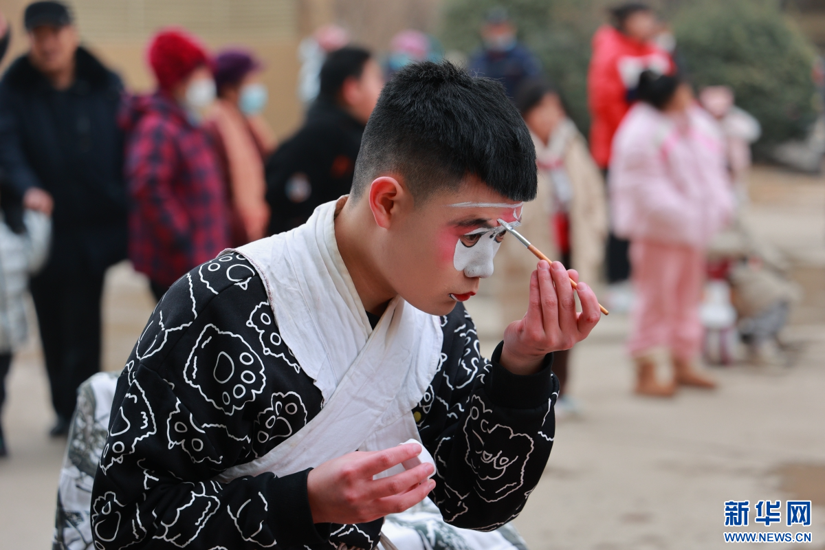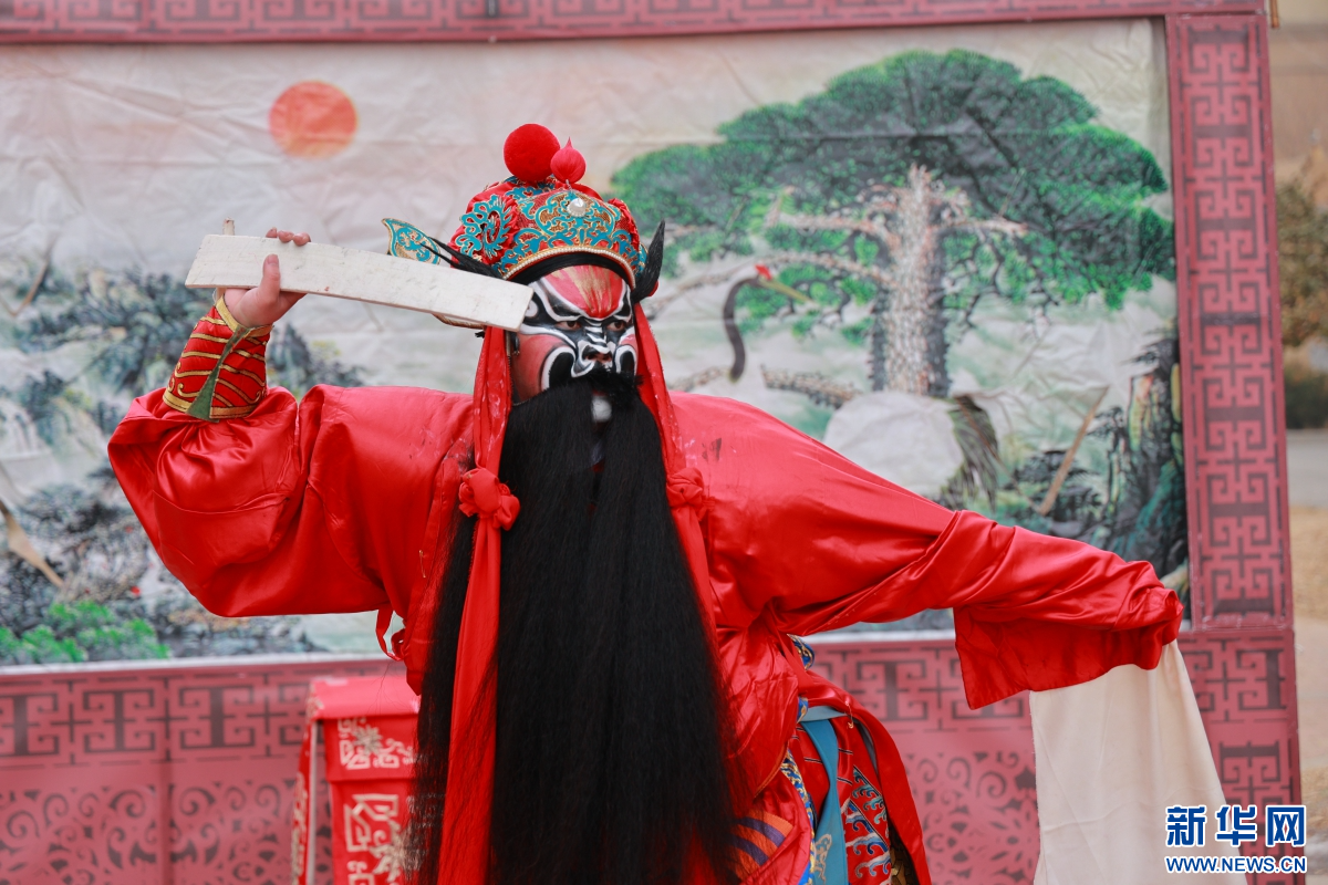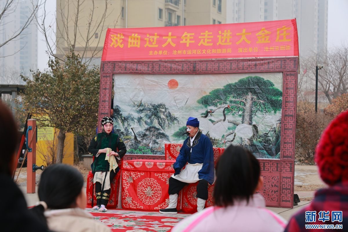 京剧团演员走进运河区大金庄村,表演经典戏曲《乌盆记》。新华网发 王韬 摄