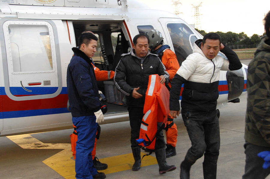 2016年12月27日救助直升机正在失火渔船上空悬停,利用绳索救起被困船员。当日中午13时04分,位于上海外高桥东偏南约90海里的东海海域一艘渔船“闽连渔66678”轮机舱着起大火,现场风速达到35节,浪高6米,其他船只无法接近救援,火助风势越烧越猛,船上的10位船员被困。
