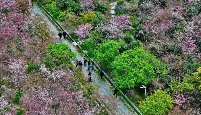 3月17日,游客在福建省连江县丹樱农场观赏盛开的晚樱。阳春三月,连江丹樱农场万株晚樱迎来盛开期,层层叠叠的花瓣缀满枝头,将农场晕染成绚烂的春日油画。