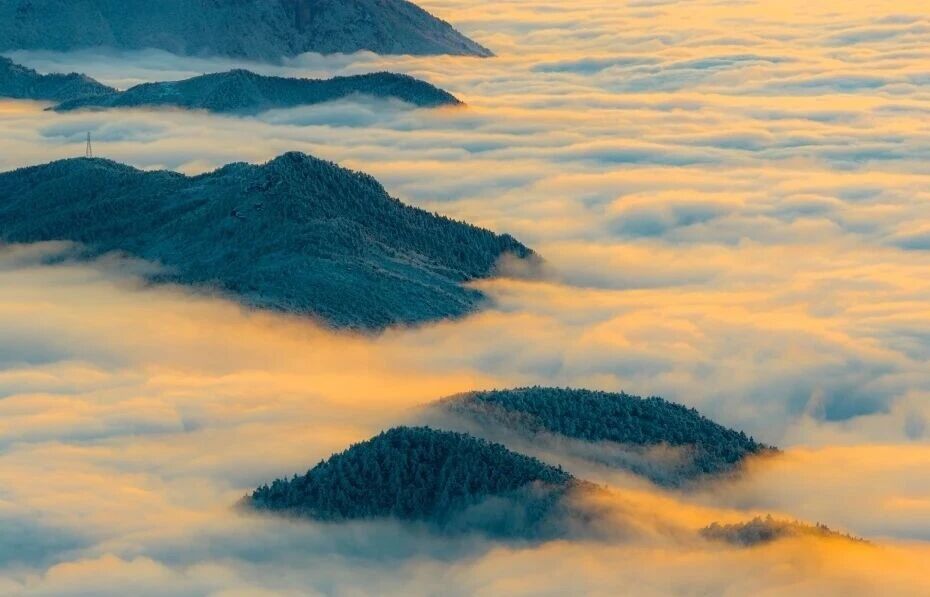 2026年2月1日,杭州临安,太子尖迎来冬日奇观,雪覆山巅,云海翻涌,朝阳破晓,金光洒满天际。