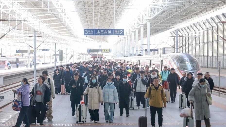 2月24日,旅客在北京北站出行。当日,中国国家铁路集团有限公司发布数据显示:2026年春节假期,铁路旅客发送量强劲增长。2月15日(腊月二十八)至2月23日(正月初七),铁路探亲流、务工流、旅游流交织叠加,客流保持高位运行,全国铁路累计发送旅客1.21亿人次,日均1341万人次。