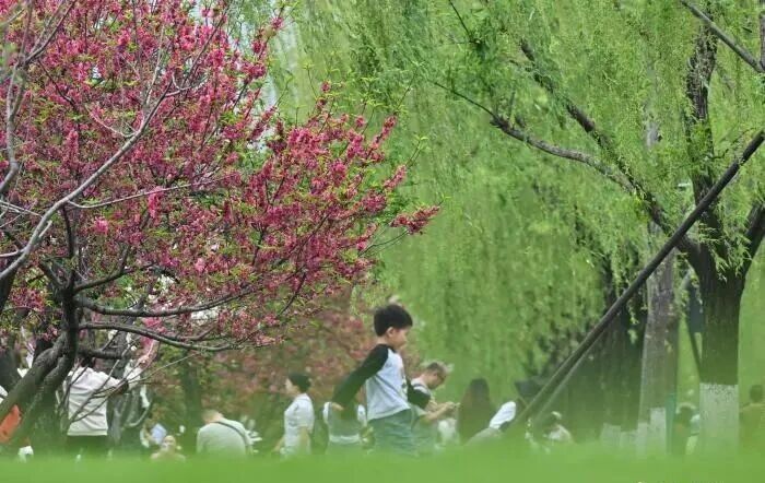 间株杨柳间株桃西湖春天醉游人