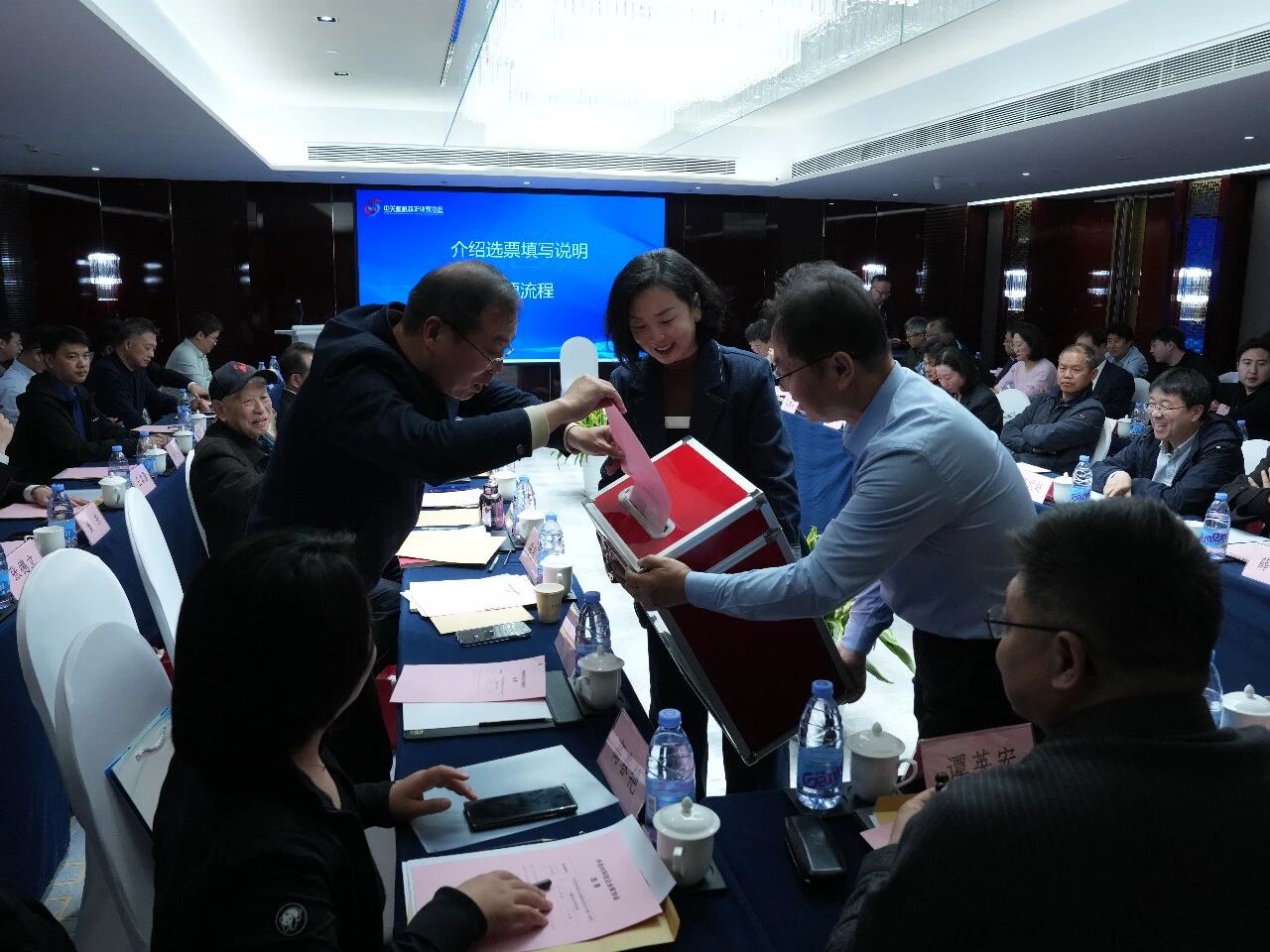 会上,协会首席顾问戴焕忠就会长候选人的遴选标准与推选情况进行详尽说明,确保选举过程公开、公平、公正。全体理事以高度的政治责任感和历史使命感,认真履行职责,审议并表决通过协会监事长蒋乾铱为监票人、执行秘书长张年武为计票人。