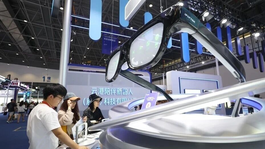 4月14日,参观者在科大讯飞展区体验AI眼镜。第六届中国国际消费品博览会正在海南海口举办,本届消博会汇聚国内多款头部AI眼镜品牌,集中呈现空间计算、端侧大模型、轻量化穿戴、全场景智能交互等前沿成果。
