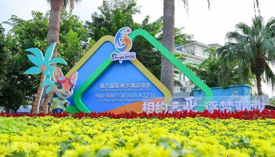 4月20日,第六届亚洲沙滩运动会的宣传标识与主题景观亮相三亚街头,营造浓厚盛会氛围。第六届亚洲沙滩运动会将于4月22日至30日在海南省三亚市举办。