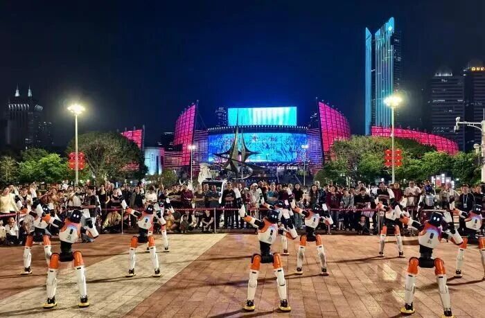 4月20日晚,一场充满科技感与观赏性的具身智能机器人路演亮相福建福州五一广场。伴随着动感十足的音乐节奏,一排排机器人挥动机械臂,动作整齐划一,赢得观众阵阵喝彩。