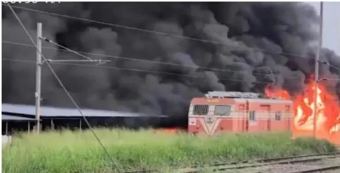 印度一火车站发生火灾大火蔓延至附近停车场多辆车遭烧毁