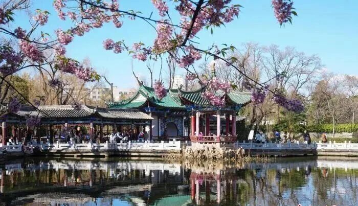 1月5日是小寒节气,云南昆明阳光明媚,气候宜人,众多市民和游客来到翠湖公园,享受冬日“春城”的温暖时光。图为公园里盛开的冬樱花。