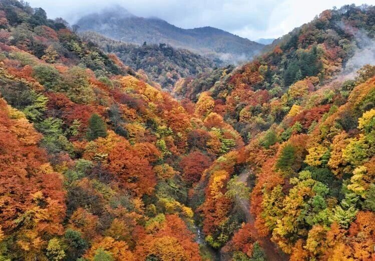 深秋时节,四川省广元市旺苍县米仓山大峡谷盐井河森林公园万山红遍,层林尽染,茫茫林海换上深红、橙红、金黄的彩色盛装,将山谷原野装点成一幅幅色彩斑斓的天然画卷,成了摄影天堂和网红打卡热地,中外知名摄影师慕名而来,八方游客纷至沓来,共赴这场秋日之约,感受大自然的秋日浪漫,陶醉于金色的世界里。